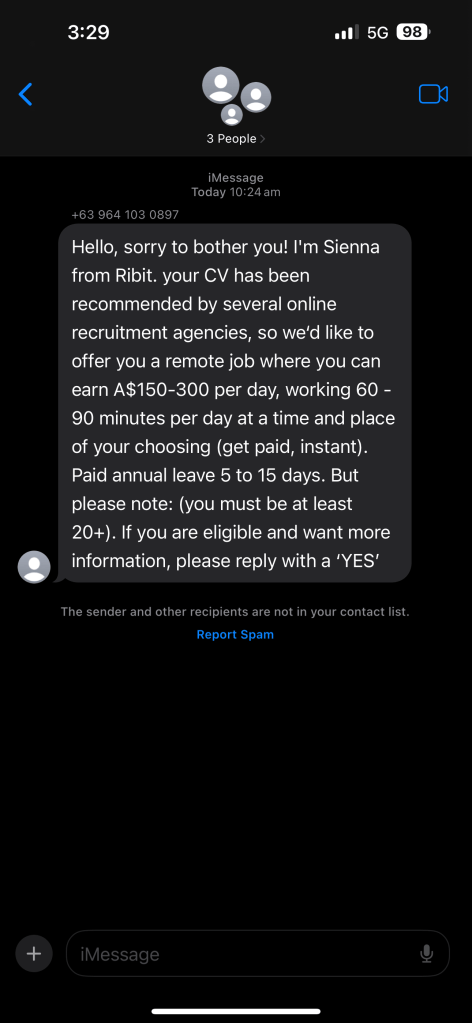 Have you ever received a text message offering a high-paying job or alerting you about a missed delivery? I received one,(picture attached) While some may be legitimate, many are scams designed to steal your personal information or money.